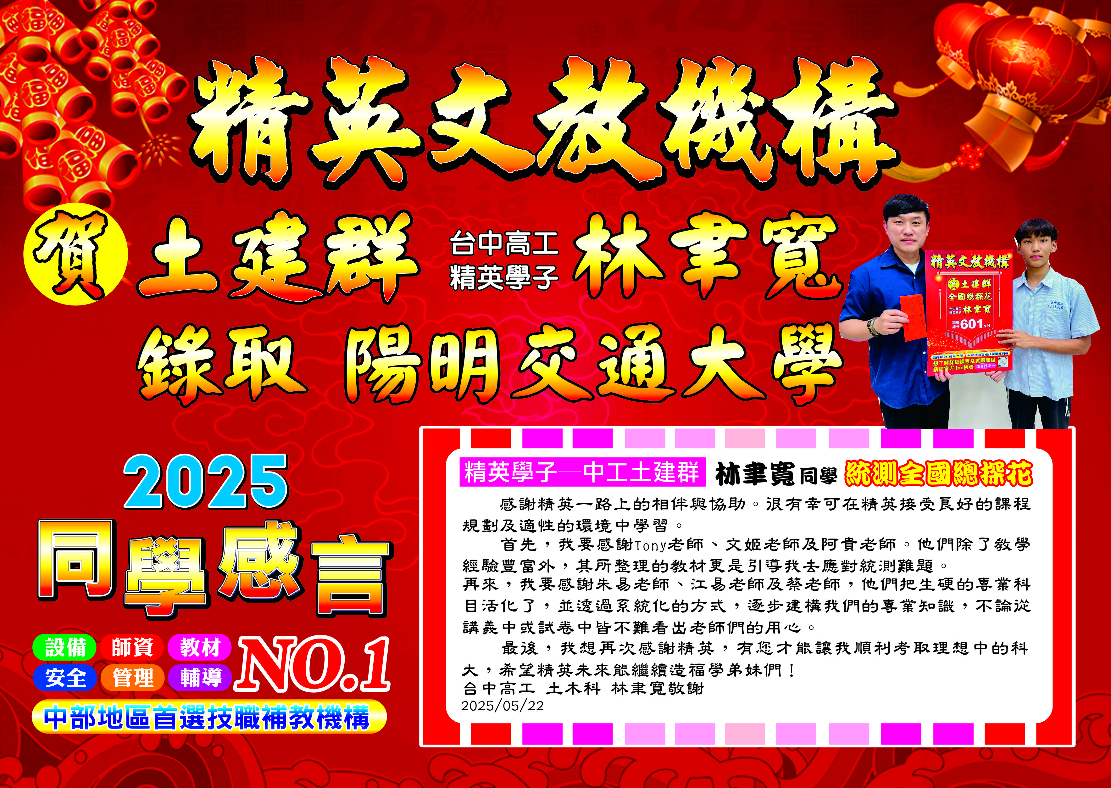 狂賀本班學子土建群林聿寬同學錄取陽明交通大學